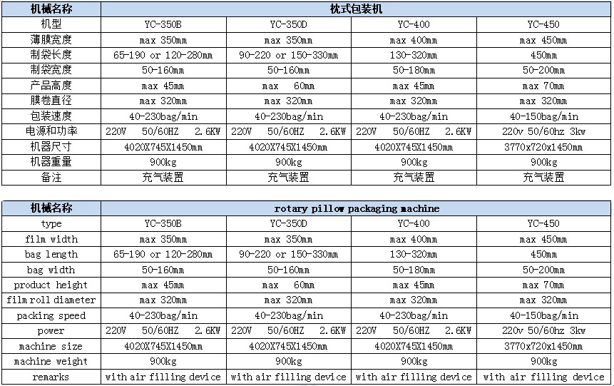 YC-350/400/450 rotary pillow packaging machine